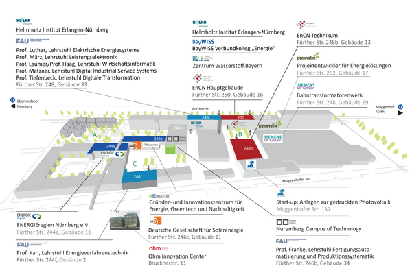 Auch räumlich zeigt sich diese enge Verbindung, am Standort «Auf AEG» in Nürnberg. An diesem wichtigen Wirtschafts- und Technologiestandort kommen Forschung, Unternehmen, Startups und Netzwerke aus der Energiebranche zusammen. Hier entstehen Ideen, Kooperationen und Projekte, die weit über das Stadtgebiet hinauswirken.
