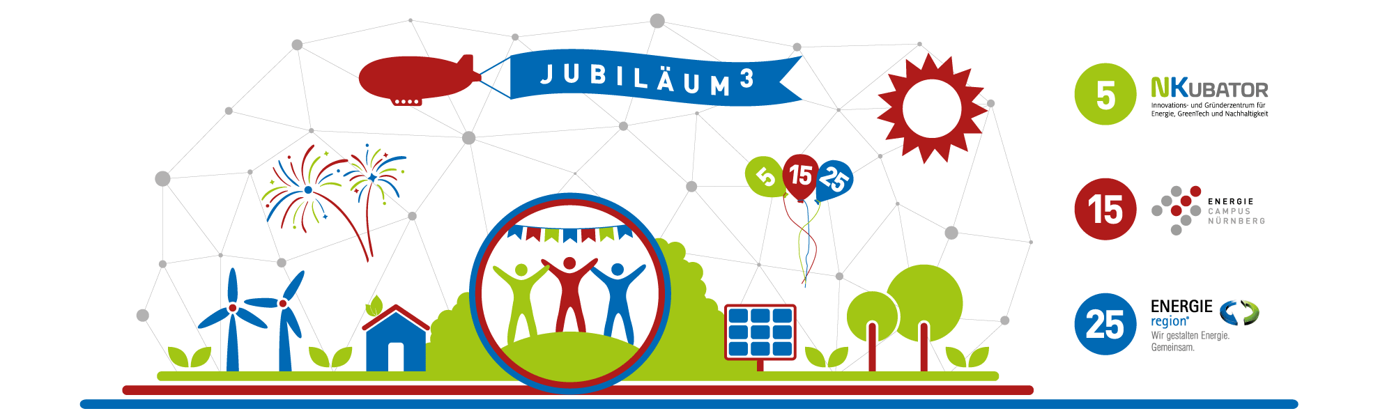 In diesem Jahr gibt es gleich drei Gründe zu feiern: 5 Jahre NKubator, 15 Jahre Energie Campus Nürnberg und 25 Jahre ENERGIEregion Nürnberg. Drei Organisationen mit einem gemeinsamen Ziel: die Energie-Zukunft der Metropolregion Nürnberg zu gestalten.
