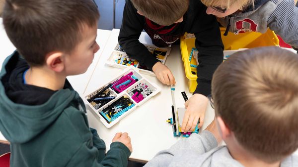 Mithilfe des Baukastensystems LEGO® Education SPIKE™ Prime haben die Kinder zunächst einen eigenen kleinen Roboter gebaut und dessen Können sowie Grenzen im Praktischen erprobt. Mit viel Spaß wurden sie an ein komplexes Forschungsfeld herangeführt und hoffentlich nachhaltig dafür begeistert.