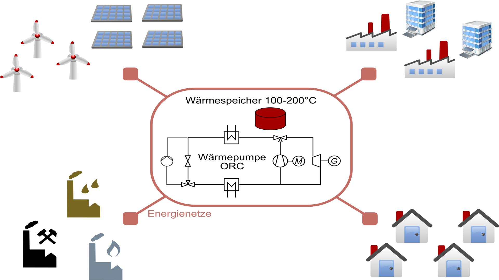 Zielsetzung der Arbeit am IPAT ist die Entwicklung eines wasserbasierten Wärmespeichers. Die Be- und Entladung des Speichers erfolgt dabei über einen neuartigen HP-ORC-Prozess der in einem parallel laufenden Projekt entwickelt wird. Dieser soll einen Wärmepumpenprozess und einen Organic Rankine Cycle miteinander vereinen.